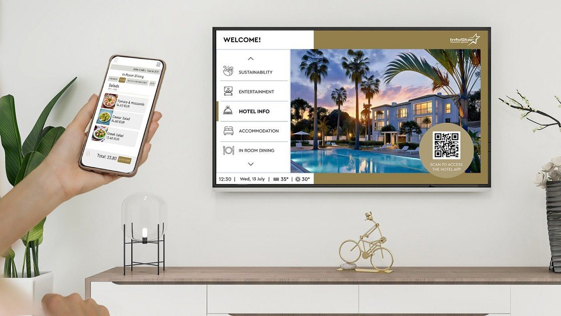 Komplex megoldás a szállodatulajdonosok, szállodaüzemeltetők számára, amely a vendégeknek kiváló minőségű digitális TV-t, internetet, naprakész szállodai információkat, promóciókat, TV-n keresztül történő szolgáltatásrendelést, szobaszervizt és még sok minden egyéb szolgáltatást is kínál. Minden, ami a vendéginformációk digitális megjelenítéséhez szükséges a vendégszobában.